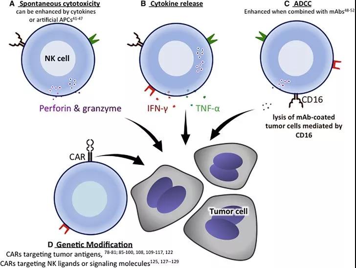 ▲ NK細胞介導(dǎo)的腫瘤細胞毒性機制