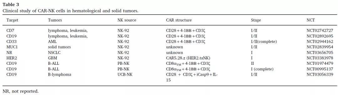 ▲ CAR-NK細胞在血液瘤和實體瘤中的臨床研究